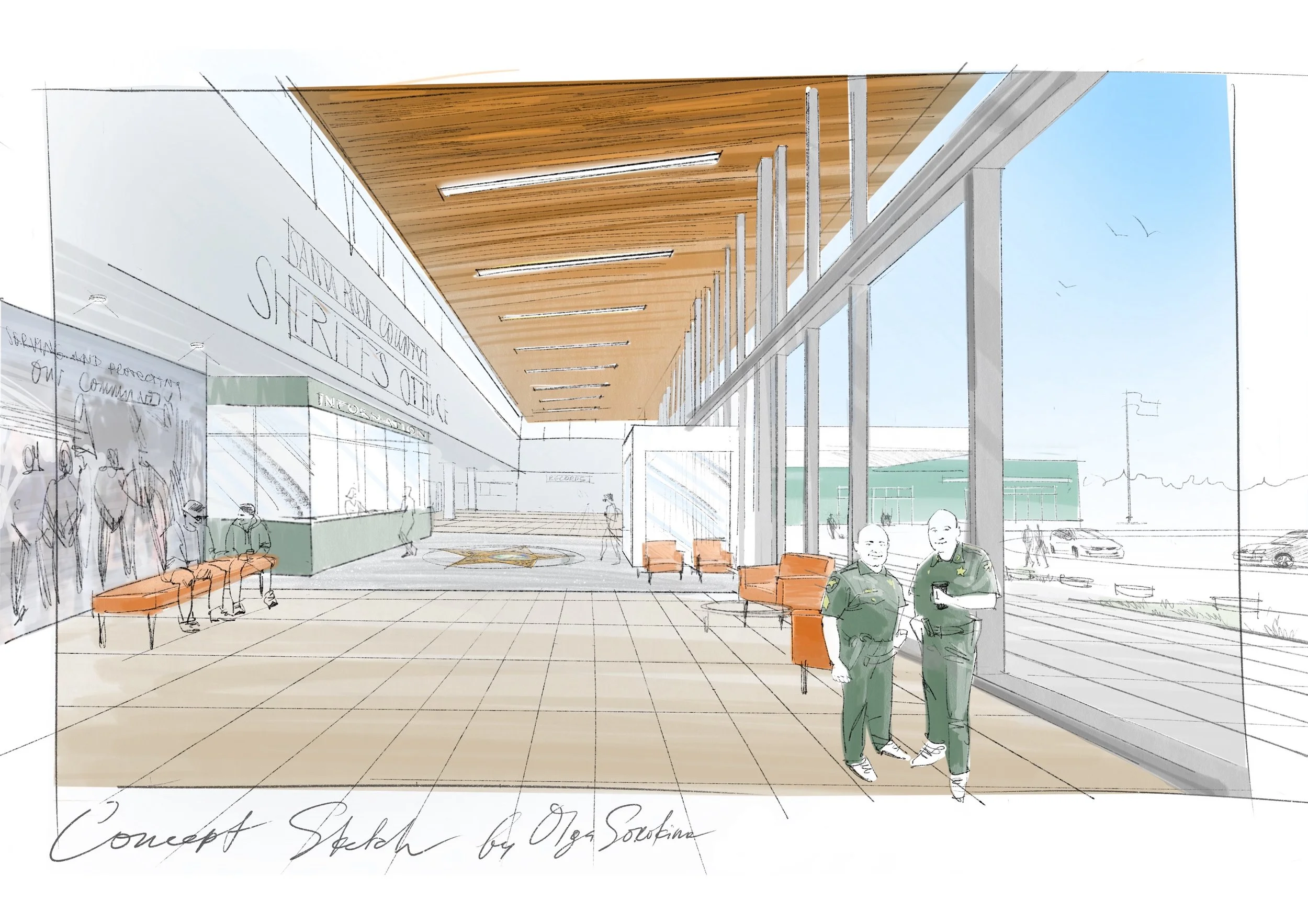 The second commission was for a future administrative building of a police station. Since the architecture was still conceptual, the client needed a sketch that would suggest possible solutions.