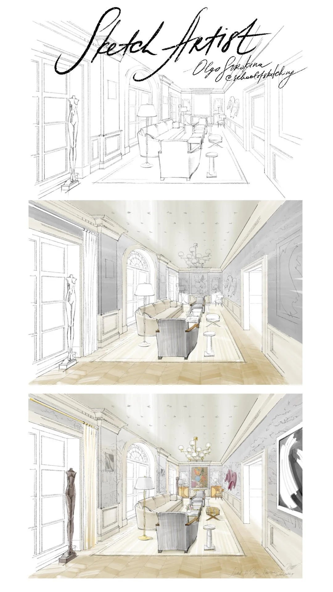 The third project was especially exciting because I was both the interior designer and the sketch artist.
