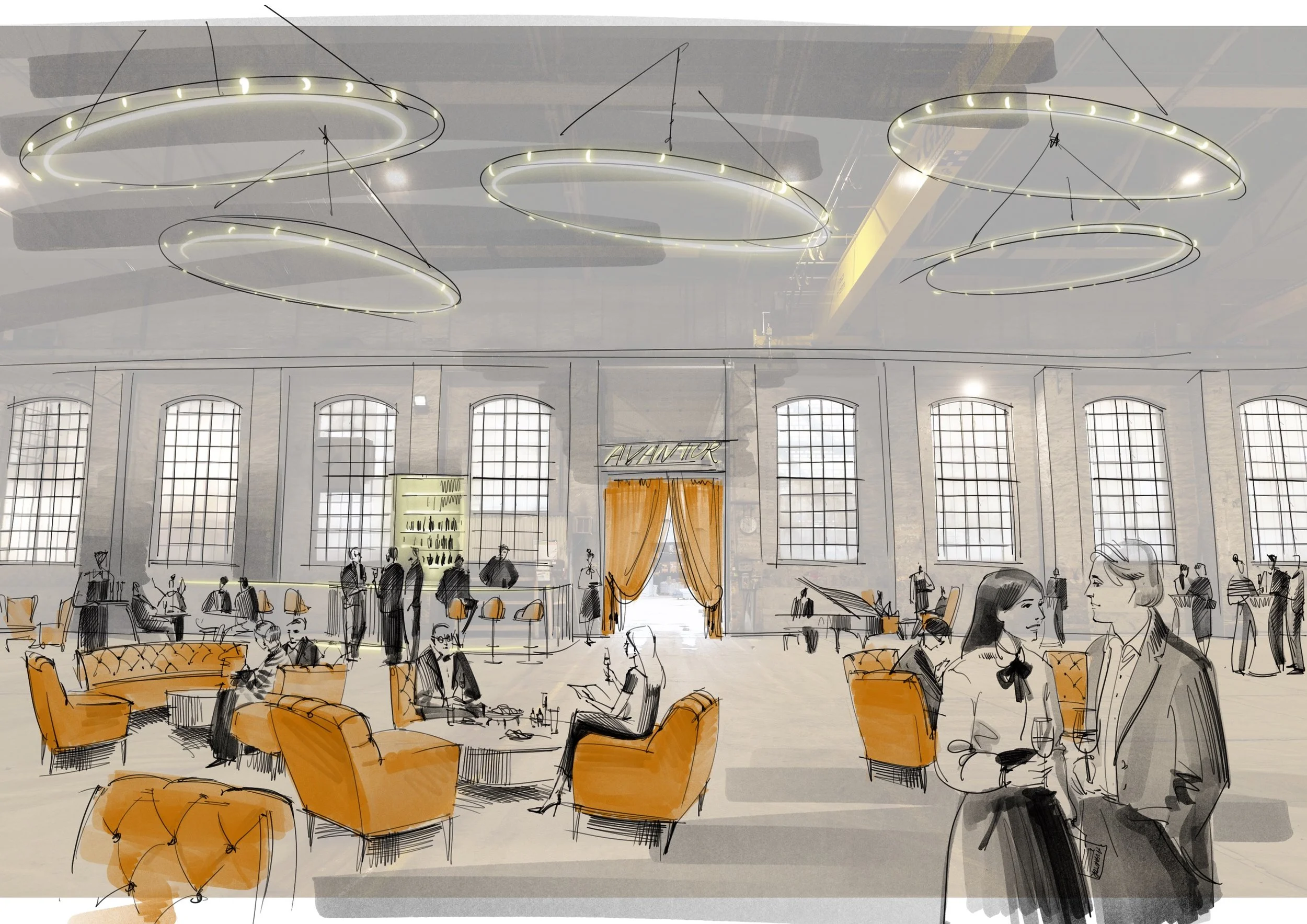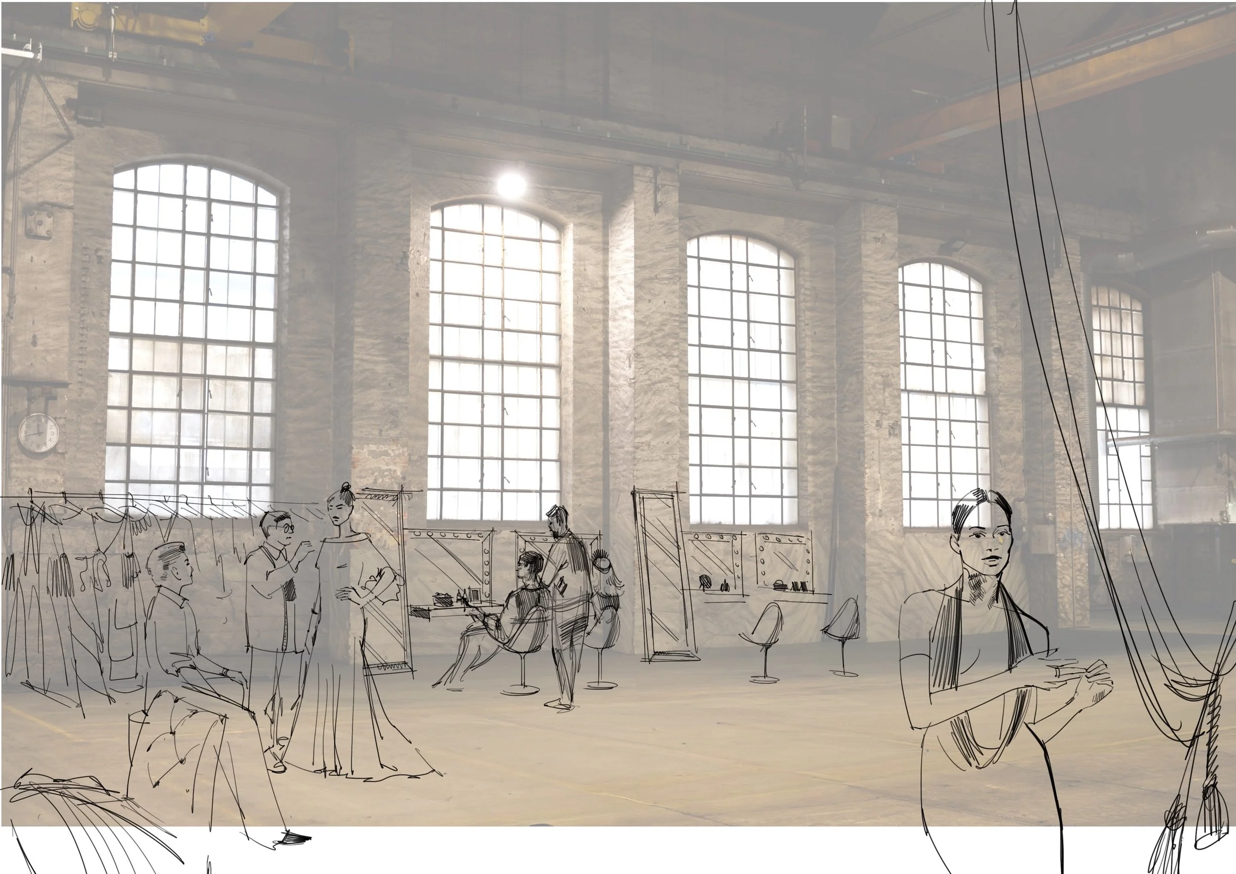The client reached out after discovering my work on Pinterest. They were preparing a presentation to pitch a real estate property in Oslo, as a potential theatre space. What they needed were not technical drawings or polished renders, but expressive sketches that could help their customer feel the potential of the space. There was no fully formed vision yet. Only a few references, a general direction, and a tight deadline. The brief invited interpretation and suggestion: atmosphere over detail, expression over precision.